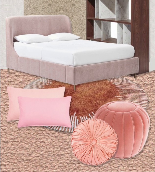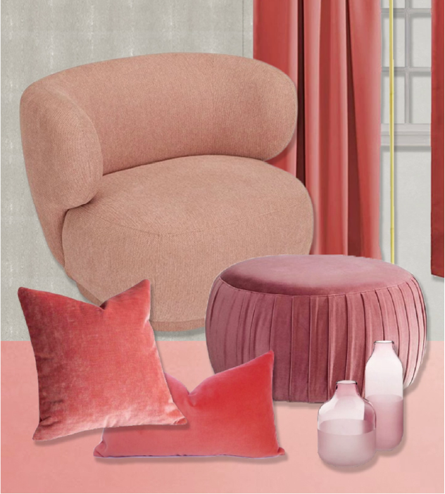 Starting with upholsteries, imagine a luxurious blush pink velvet sofa that becomes the centerpiece of the room, exuding elegance and femininity. Complementing this, a collection of throw pillows in various shades of pink and peach can be scattered across the sofa, adding depth and visual interest. Moving on to curtains, a light and airy peach-colored fabric can be chosen to drape gracefully over the windows, allowing a soft and warm glow to fill the room.