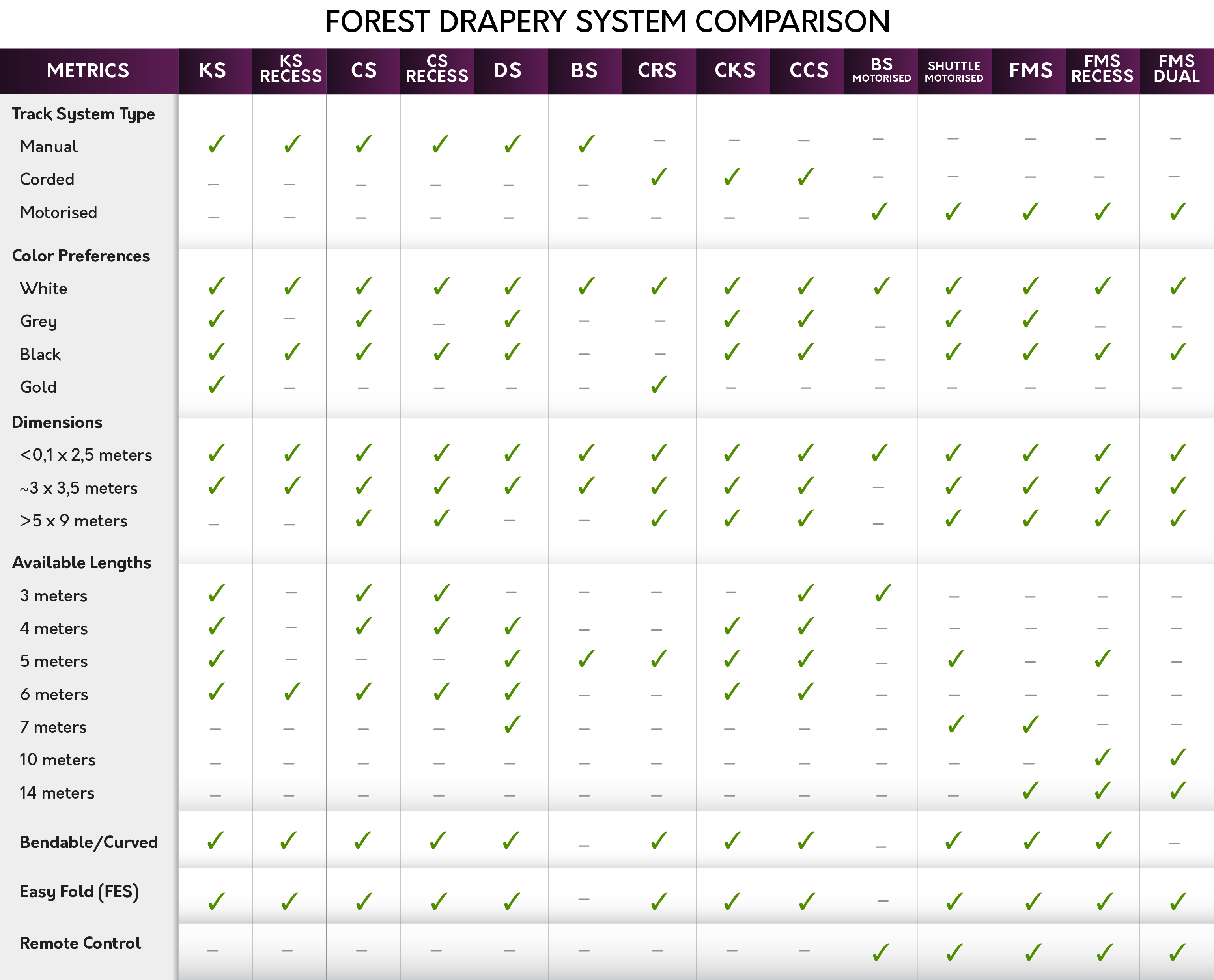 Choose from a complete range of over 20 curtain track systems, all durable and elegant, multi-functional and with full support and warranty. See below detailed description and download all kinds of brochures.