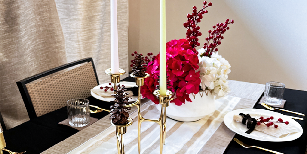 The elegantly adorned table runner creates a sense of purity and serenity, setting the stage for a beautiful year-end celebration.